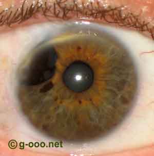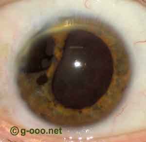 Melanoma da íris, de um homem de 48 anos de idade, com catarata, antes... |