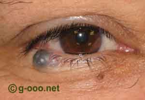 Hidrocistoma apócrino do bordo da pálpebra inferior, de uma mulher de 53 anos,