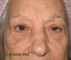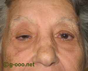 Ptose palpebral bilateral de uma mulher de 74 anos, antes