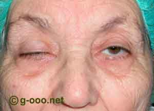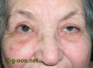 Ptose bilateral assimétrica de uma mulher de 78 anos, antes |