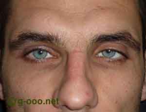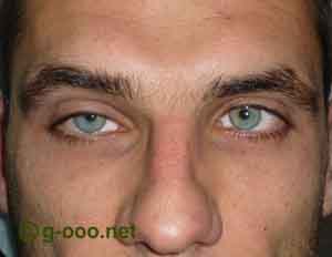 Ptose palpebral bilateral, mais acentuada à direita, num homem de 31 anos, antes