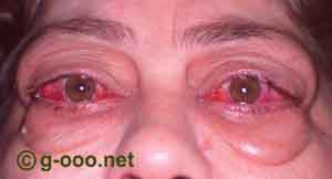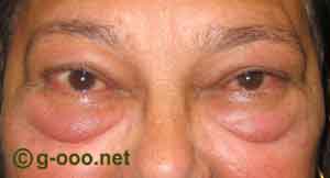 Marcado edema orbitário em dois casos de orbitopatia tiroideia em fase activa. |
